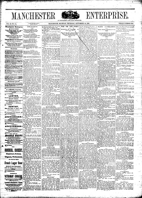 Text (1891)Part of Making of Modern MichiganManchester enterprise. Vol. 24 no. 52 (1891 September 10)