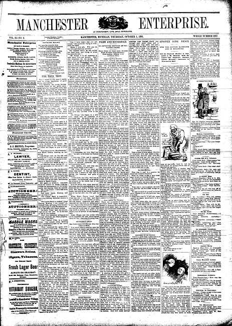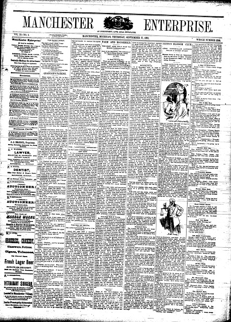 Text (1891)Part of Making of Modern MichiganManchester enterprise. Vol. 25 no. 1 (1891 September 17)