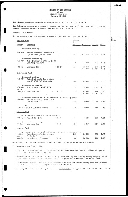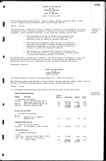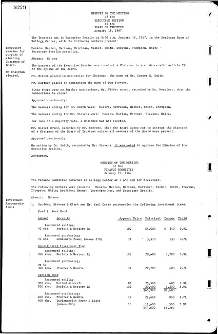Collection: Meeting Minutes of the Board of Trustees (UA 1)