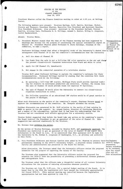 Collection: Meeting Minutes of the Board of Trustees (UA 1)