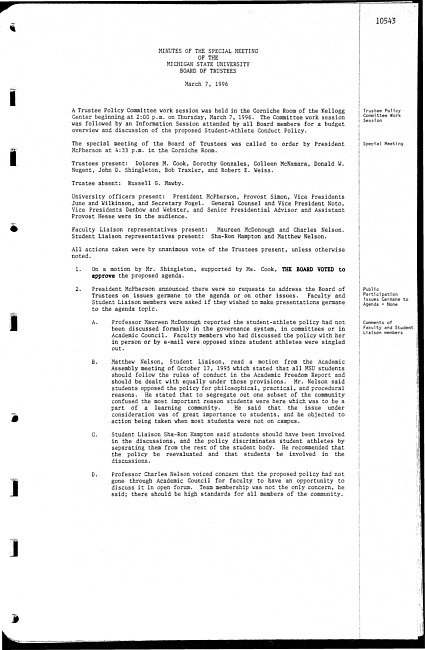 Meeting minutes, march 7, 1996