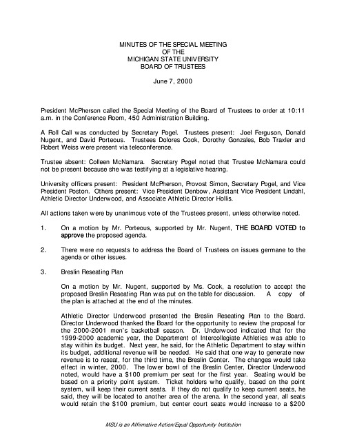 Meeting Minutes of the Board of Trustees (UA 1)
