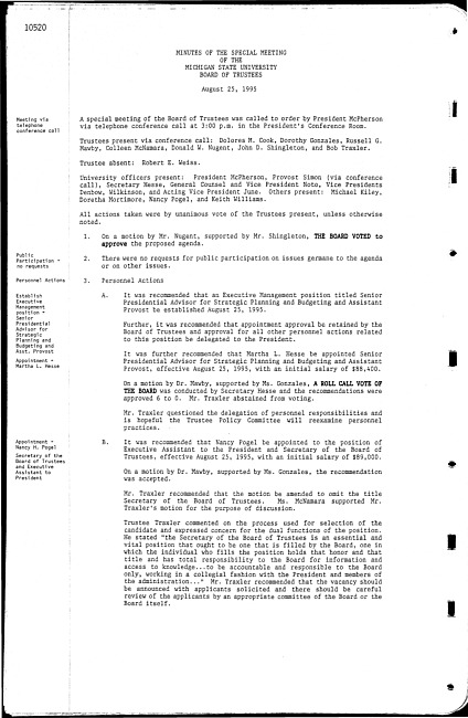 Collection: Meeting Minutes of the Board of Trustees (UA 1)