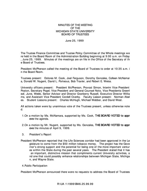 Collection: Meeting Minutes of the Board of Trustees (UA 1)