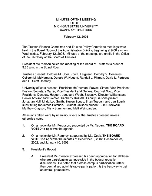 Collection: Meeting Minutes of the Board of Trustees (UA 1)
