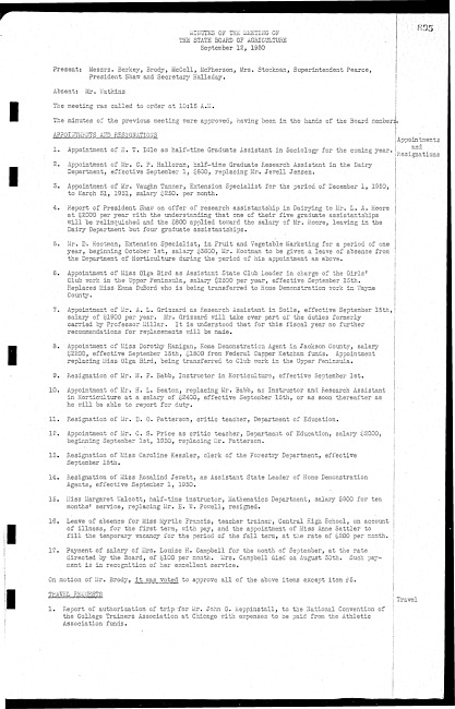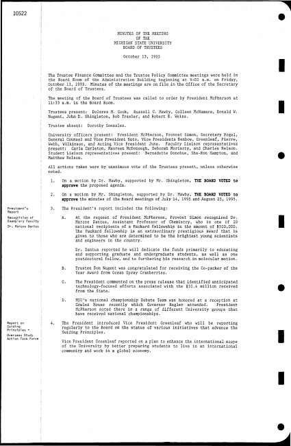 Collection: Meeting Minutes of the Board of Trustees (UA 1)