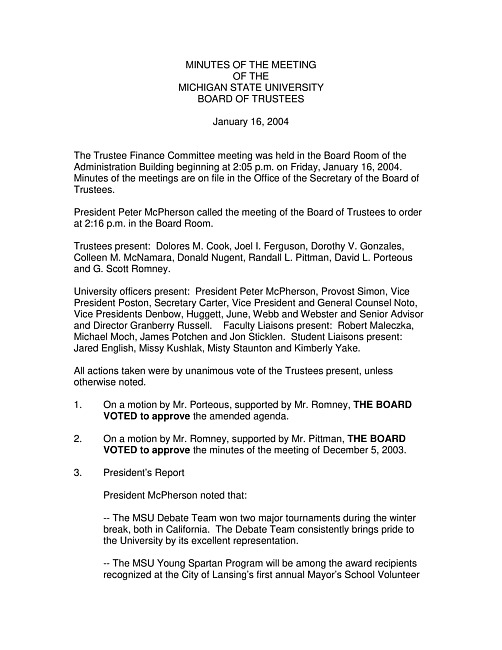 Collection: Meeting Minutes of the Board of Trustees (UA 1)