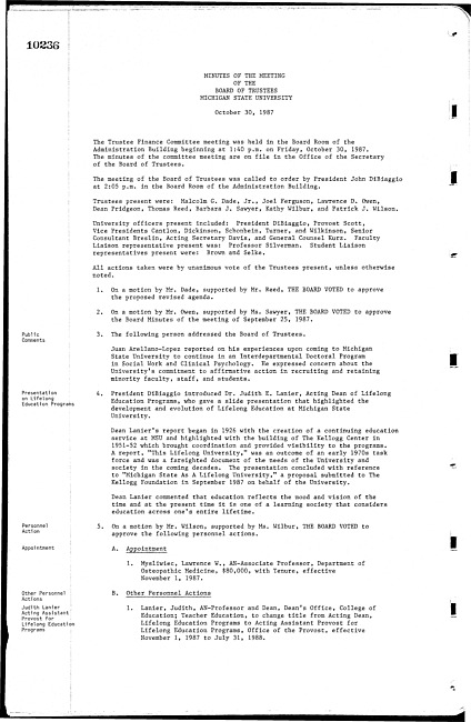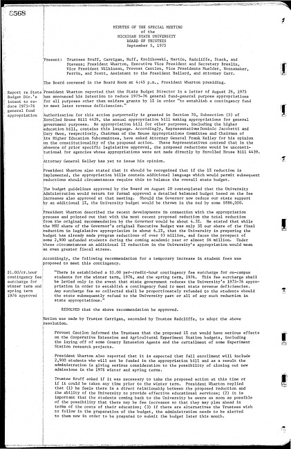 Collection: Meeting Minutes of the Board of Trustees (UA 1)
