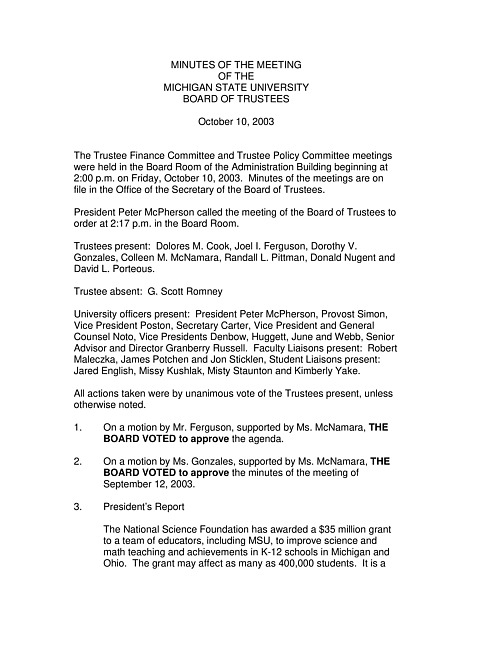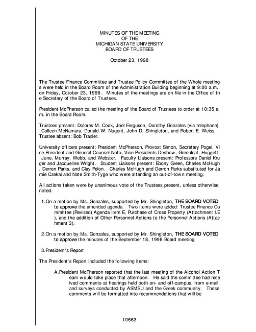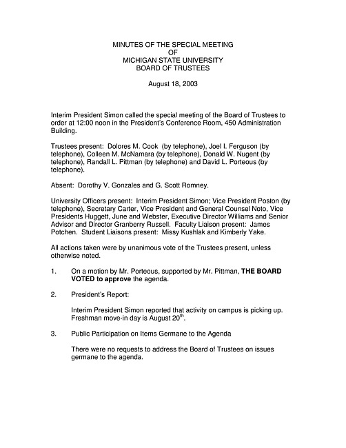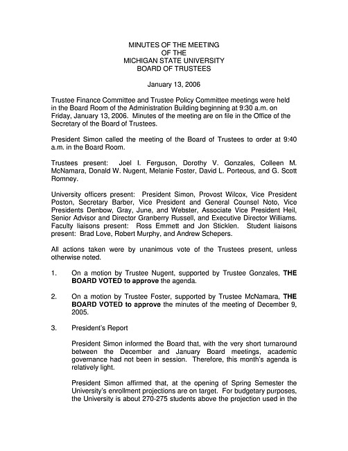 Collection: Meeting Minutes of the Board of Trustees (UA 1)