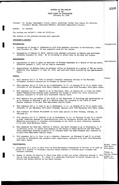 Meeting minutes, February 20, 1947