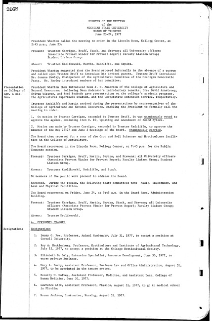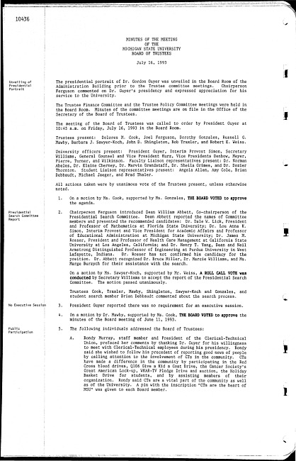 Collection: Meeting Minutes of the Board of Trustees (UA 1)
