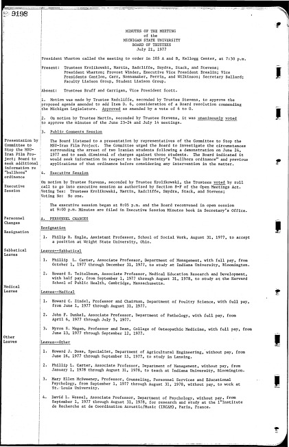 Collection: Meeting Minutes of the Board of Trustees (UA 1)