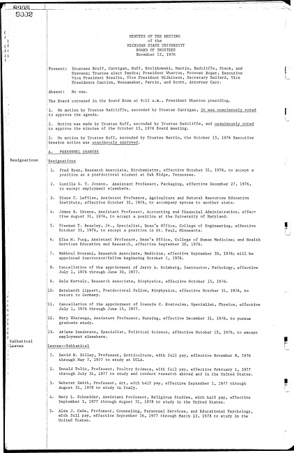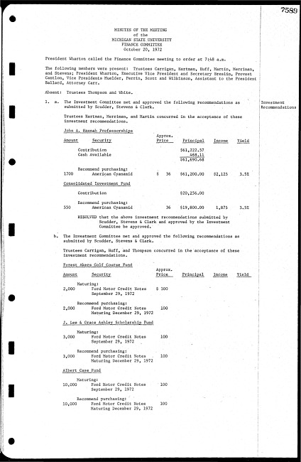 Collection: Meeting Minutes of the Board of Trustees (UA 1)