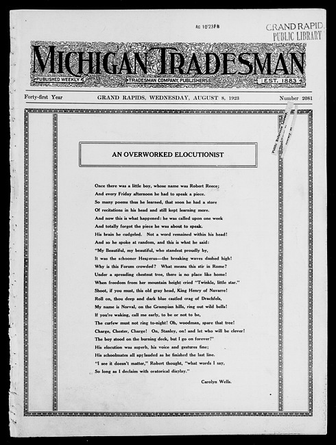 Michigan tradesman. Vol. 41 no. 2081 (1923 August 8)