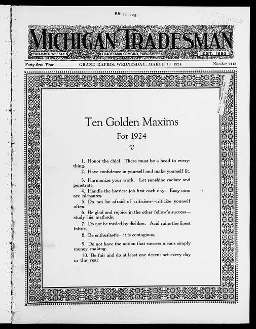 Michigan tradesman. Vol. 41 no. 2113 (1924 March 19)
