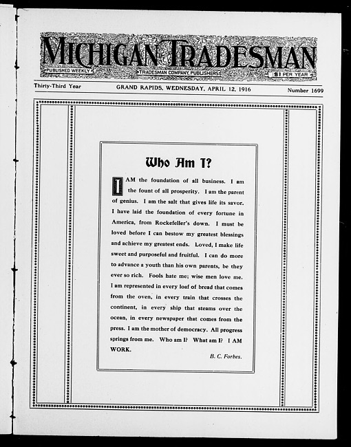 Michigan tradesman. Vol. 33 no. 1699 (1916 April 12)