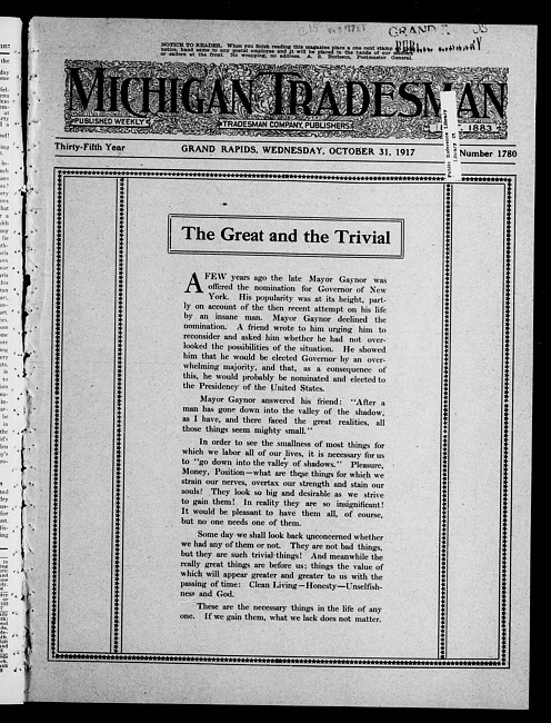 Michigan tradesman. Vol. 35 no. 1780 (1917 October 31)