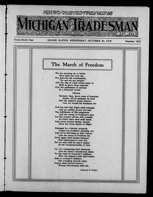 Michigan tradesman. Vol. 36 no. 1831 (1918 October 23)