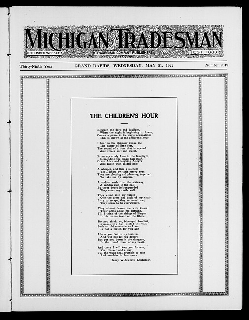 Michigan tradesman. Vol. 39 no. 2019 (1922 May 31)