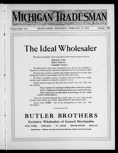 Michigan tradesman. Vol. 29 no. 1482 (1912 February 14)