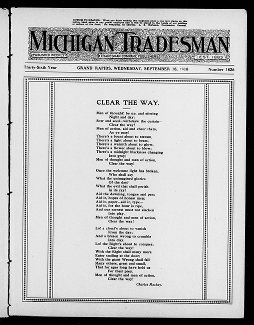 Michigan tradesman. Vol. 36 no. 1826 (1918 September 18)