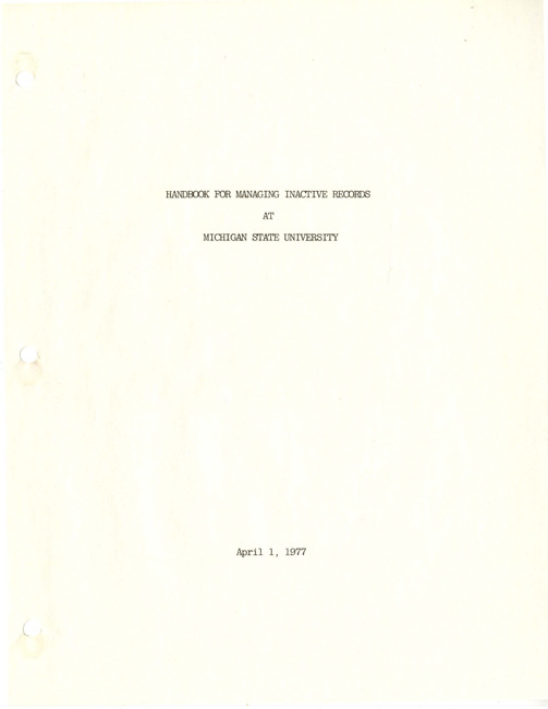 Handbook for managing inactive records at Michigan State University. (1977)