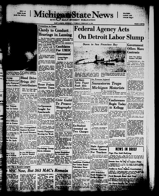 Michigan State news. (1954 February 9)
