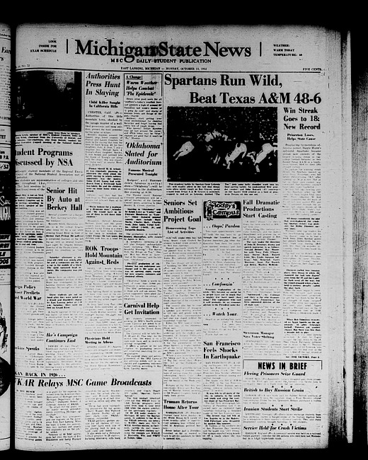 Michigan State news. (1952 October 13)
