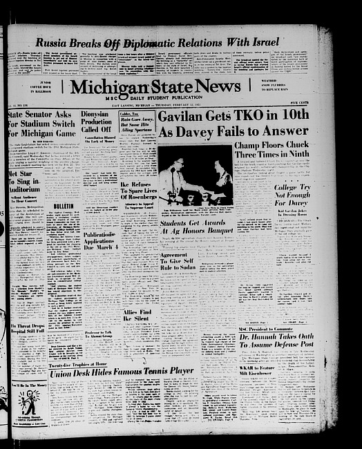 Michigan State news. (1953 February 12)