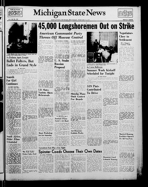 Michigan State news. (1957 February 13)