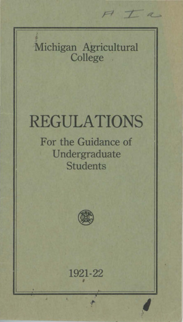 Regulations for the guidance of undergraduate students. (1921-1922)