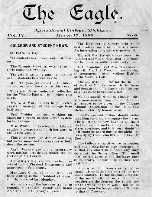 The Eagle. Vol. 4 no. 5 (1893 March 17)