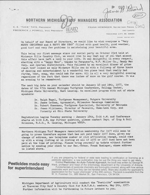 Text (1974)Part of Turf TimesNorthern Michigan Turf Managers Association newsletter. (1976 December)