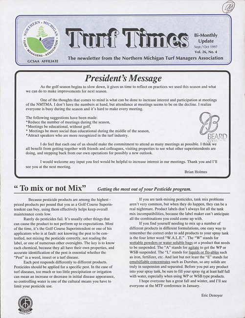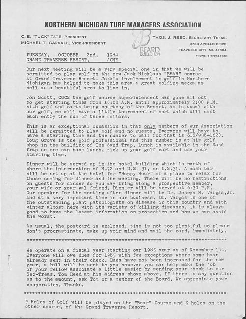 Text (1984)Part of Turf TimesNorthern Michigan Turf Managers Association newsletter. (1984 September)