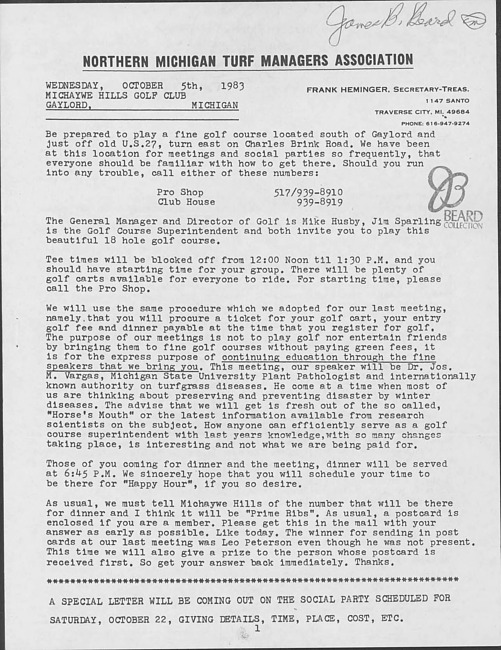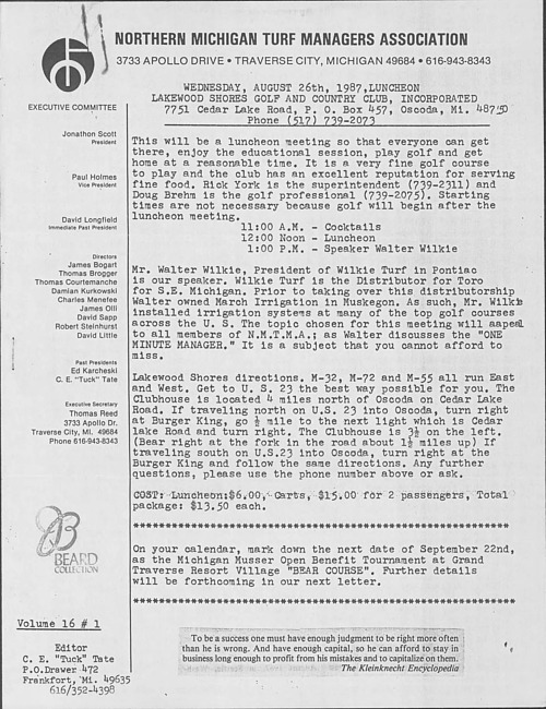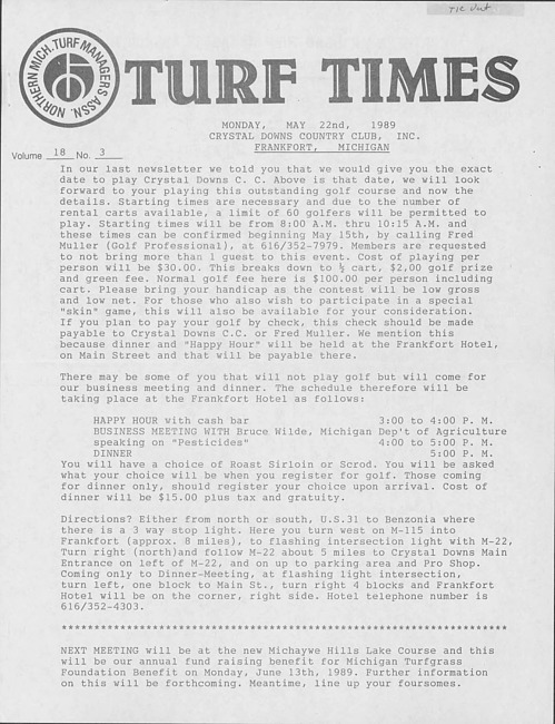 Text (1982)Part of Turf TimesNorthern Michigan Turf Managers Association newsletter. (1983 October)