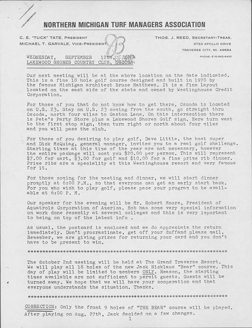 Text (1976)Part of Turf TimesNorthern Michigan Turf Managers Association newsletter. (1980 October)