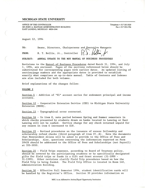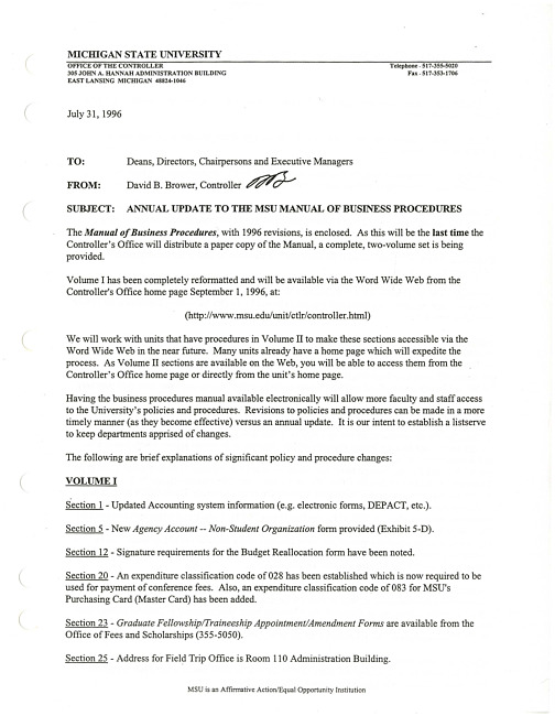 MSU Manual of Business Procedures (UA 5.1)