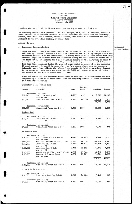 Meeting minutes, January 18, 1974