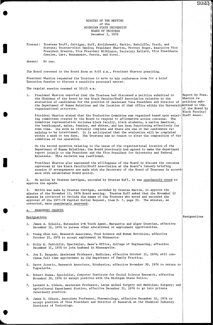 Meeting minutes, December 3, 1976