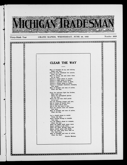 Michigan tradesman. Vol. 39 no. 2023 (1922 June 28)