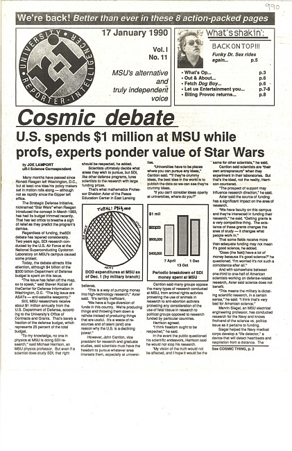 University reporter-intelligencer. Vol. 1 no. 11 (1990 January 17)