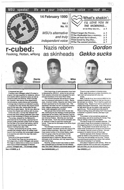 University reporter-intelligencer. Vol. 1 no. 15 (1990 February 14)