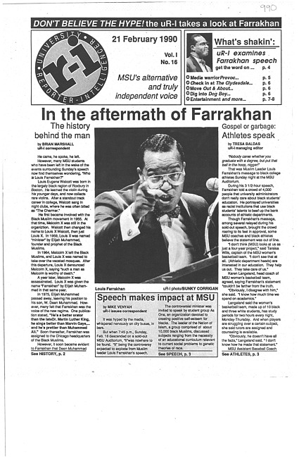 University reporter-intelligencer. Vol. 1 no. 16 (1990 February 21)