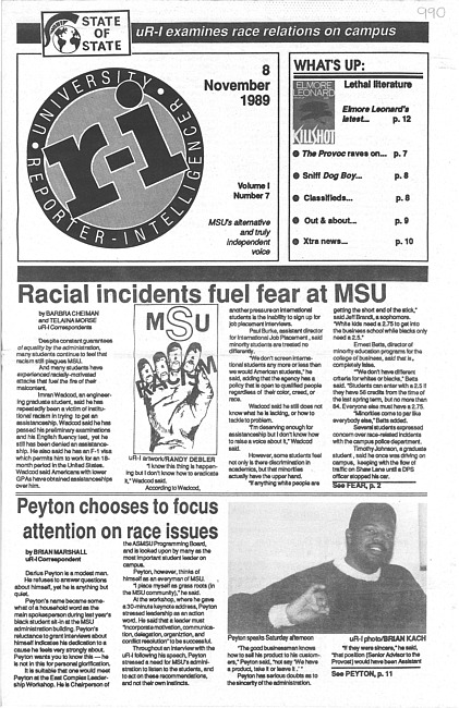 University reporter-intelligencer. Vol. 1 no. 7 (1989 November 8)
