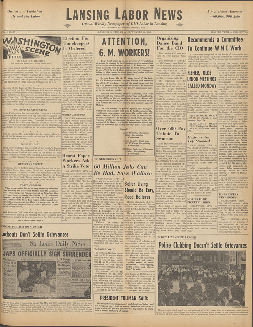 Lansing labor news. Vol. 1 no. 27 (1945 September 20)