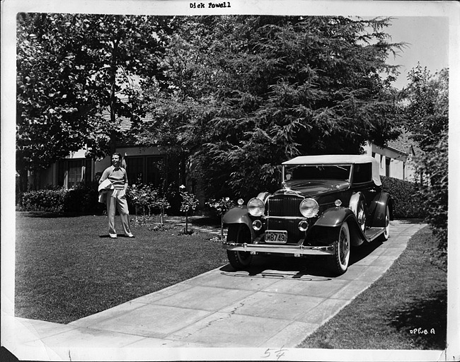 Still Image (1931)Part of Making of Modern Michigan1932 Packard convertible victoria and owner Dick Powell standing on lawn near driveway