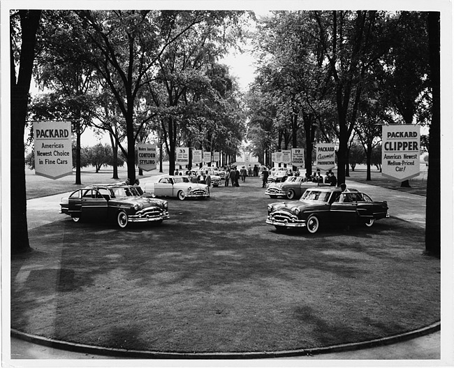 Still Image (1954)Part of Making of Modern Michigan1954 Packard 2-door sedan, three-quarter right rear view, parked on grass