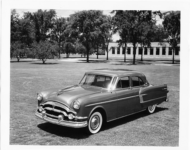 Still Image (1954)Part of Making of Modern Michigan1954 Packard 4-door sedan, three-quarter left side view, parked on grass