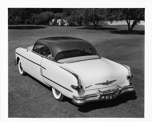 Still Image (1954)Part of Making of Modern Michigan1954 Packard 2-door sedan, seven-eights left side view, parked on grass