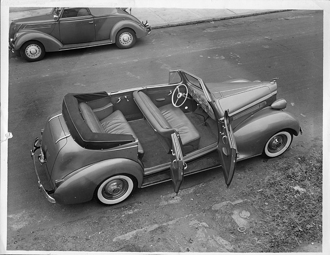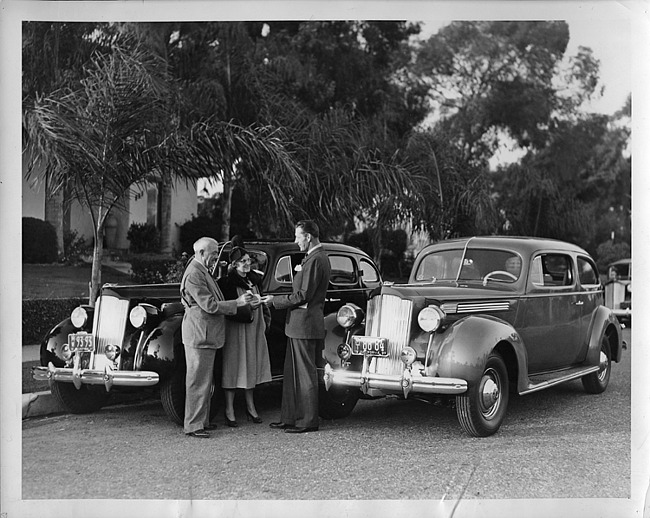 Still Image (1938)Part of Making of Modern Michigan1938 Packard touring sedans parked on street, couple and salesman in between cars